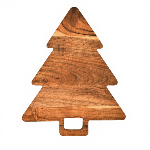 Akazienholz Kreatives Weihnachtsbaum-Schneidebrett mit Griff Massivholz Kuchen-Dessert-Tablett und Snackteller